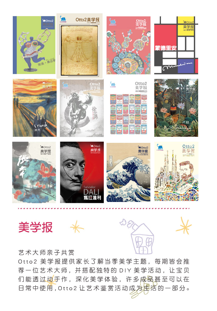 Otto2藝術美學隸屬于貝晟文教用品貿易{上海}有限公司,成立于2000年,專注于2-12歲兒童藝術美學教育。旗下分設小象畫畫趣、Otto2美學合作教室、小象聽聽、Otto2藝術美學四大品牌,深耕幼教領域20年,兩岸累計突破240+據點。Otto2以培養孩子的快樂與自信為教學理念,堅持以孩子的觀點看世界,以美學教育為基礎透過游戲、體驗、探索、創作,讓孩子感受主動學習的快樂,培養孩子創意自信的能量。