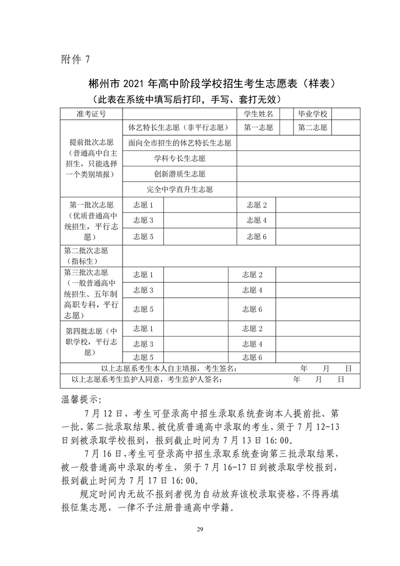 7.郴州市2021年高中階段學校招生考生志愿表(樣表)
